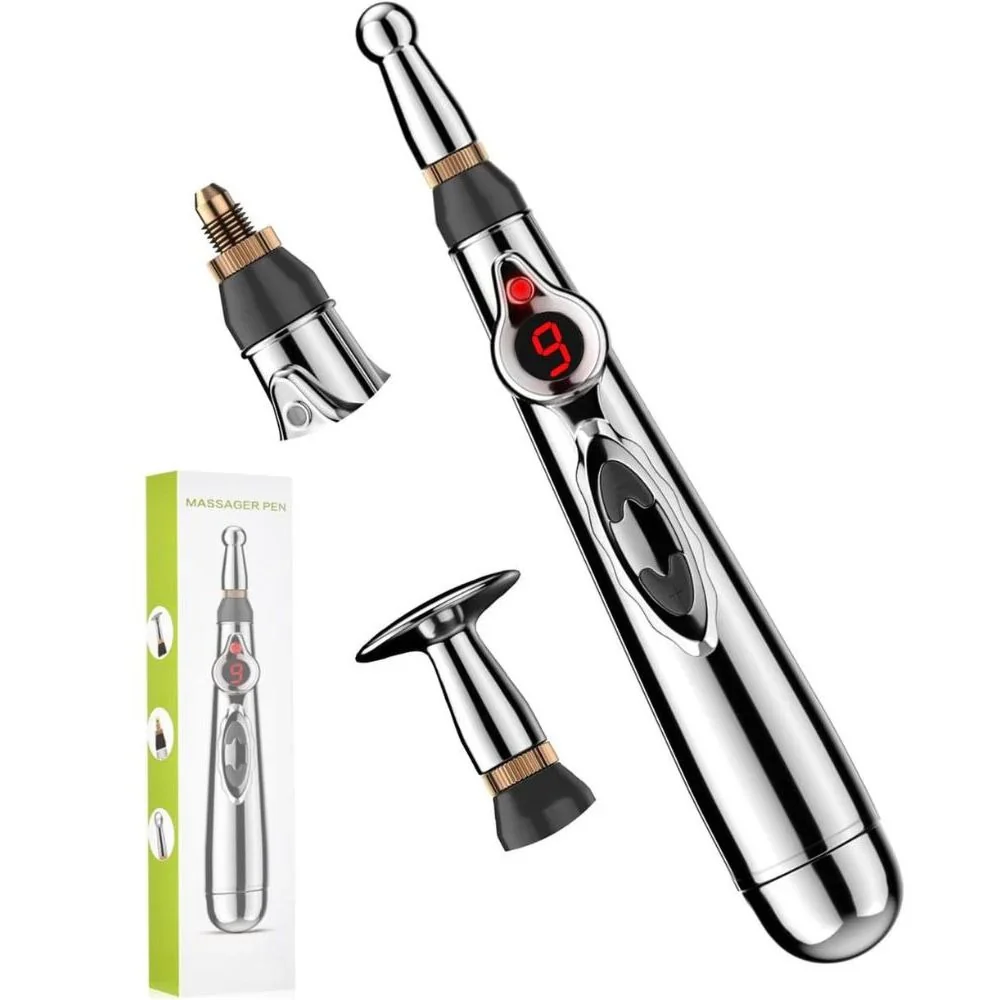 The acupuncture pen uses gentle electric pulses to stimulate reflex points. It promotes 100% natural healing. It effectively relieves conditions such as back pain, arthritis, sciatica, fibromyalgia, migraines, sports injuries, muscle and joint pain, and more.